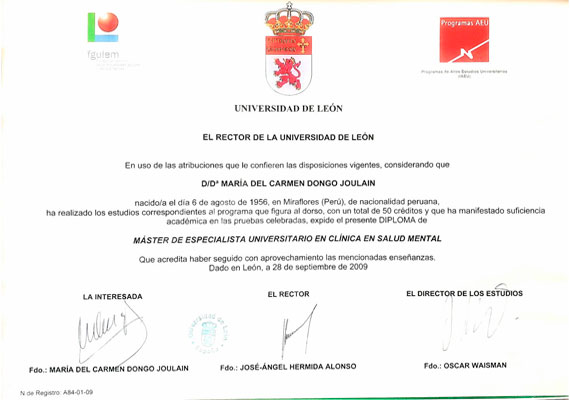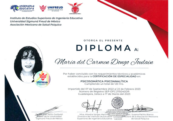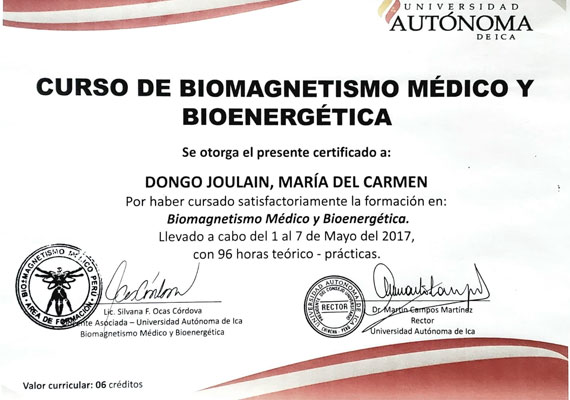 ¿ Cómo se interviene con el consultante en la Asociación Zona de Vida desde su Centro de Atención "Zona Salud" ? En cuanto al método de intervención el consultante, es estudiado desde su primera sesión en la integridad de su cuerpo físico, con la finalidad de descartar, detectar y tratar cualquier desorden ORGÁNICO mediante Medicina Bioenergética, Biomagnetismo, Telebioenergética, Medicina Cuántica y Medicina Natural. De encontrar durante todo este proceso un orígen principalmente PSÍQUICO, se acompañará el mismo desde la Psicoterapia Psicoanalítica ó desde la Clínica Psicosomática Psicoanalítica. Protocolo de atención y Syllabus de formación en PSICONEUROMAGNETISMO ® - 2024, de Mtra. Psicoan. María del Carmen Dongo Joulain: 1. Salud Mental y DSM V 2. Orígen de la enfermedad y el Síntoma 3. Psicopatologías y Diagnósticos en Salud Mental 4. Neuropsicología y Diagnósticos 5. Cerebro 6. Sistema Nervioso Central y Periférico 7. Plasticidad Cerebral 8. Amígdala Cerebral y Sistema Límbico 9. Emociones 10. Adn Emocional 11. Emociones Estancadas 12. Plasticidad Cerebral 13. Psicoanálisis 14. Clínica Psicoanalítica Psicosomática 15. Psiconeuroinmunoendocrinología 16. Historia del Magnetismo 17. Magnetoterapia 18. Neuroestimulación Magnética 19. Bioenergética 20. Telebioenergética 21. Flores de Bach 22. Biomagnetismo 23. Par Biomagnético 24. Protocolo Completo de atención en PNM® Mtra. Psicoan. MARÍA DEL CARMEN DONGO JOULAIN 51-999.41.44.66 PERÚ zonadevidaperu@gmail.com
